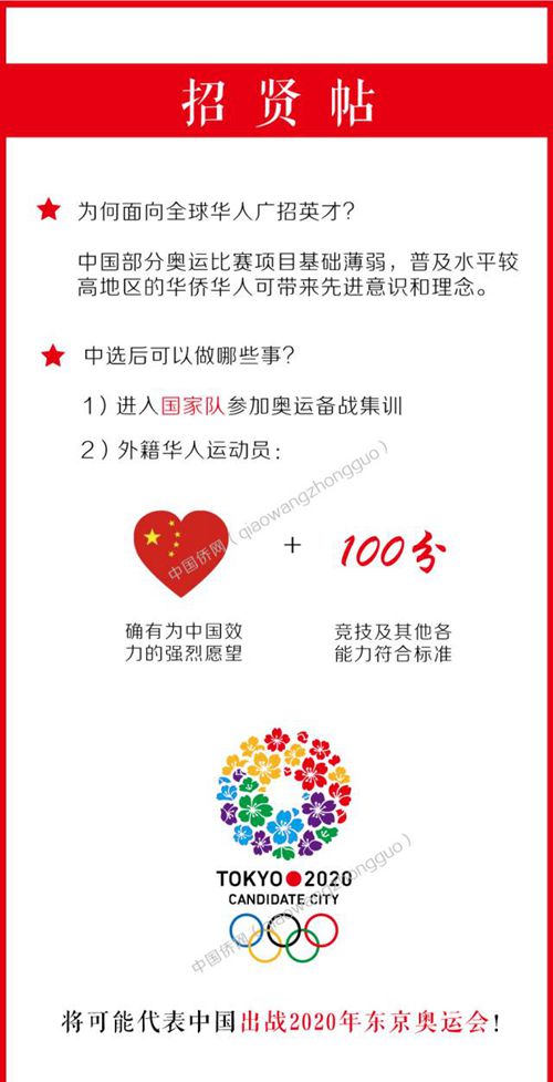 中國僑網(wǎng)8月10日電 題:全球華人注意!您有一個機會,代表中國參加2020年東京奧運會!