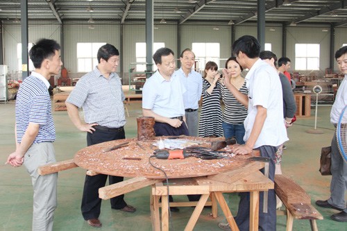 在泰州古華木業(yè)有限公司,楊峰一行參觀了工廠生產(chǎn)流程、車間布局、生產(chǎn)設(shè)備及其產(chǎn)品,聽取了企業(yè)負(fù)責(zé)人關(guān)于目前產(chǎn)品市場(chǎng)、產(chǎn)品價(jià)格、工藝控制及未來(lái)發(fā)展方向等情況的介紹。楊峰肯定了企業(yè)堅(jiān)定純手工訂制風(fēng)格的產(chǎn)品定位,并建議該企業(yè)更加注重環(huán)保、節(jié)能和雕刻工匠工作條件的改善,學(xué)習(xí)借鑒同行業(yè)大型企業(yè)的經(jīng)驗(yàn),加大新品研發(fā)力度,同時(shí)做好產(chǎn)品宣傳。