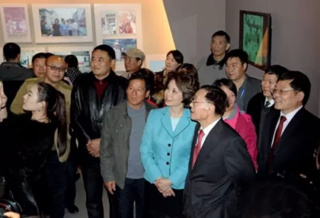 △2014年11月11日,趙錫成與趙小蘭為朱木蘭銅像揭幕,并與來賓一道共同參觀來安人物