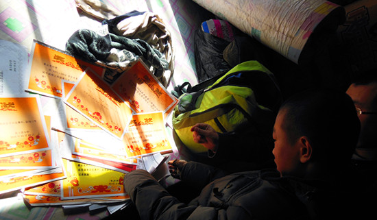 在西溝村的崔云龍家里,破爛的房子和滿屋的獎狀形成了鮮明的對比,這是一個沒有母親且父親患有腦血栓的貧苦孩子,但他自幼就非常懂事,學(xué)習(xí)刻苦、勤勞簡樸,在老師的推薦下與耿喜鋼建立了扶貧關(guān)系。在耿喜鋼的感召下,隨行人員也自發(fā)為孩子準(zhǔn)備了紅包。他們希望孩子能夠保持積極向上的心態(tài),健康成長。