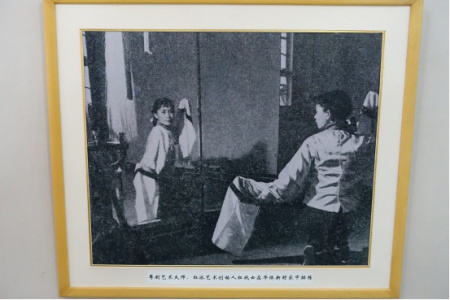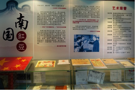 紅線女從1957年始直至晚年離世,在這里度過了半個多世紀(jì)的時光。在100平方米左右的“華僑新村紀(jì)念館”中展示著這樣一幅照片,在玉子崗旁一座米黃色的樓房里,粵劇著名藝術(shù)家紅線女在單辟的練功小內(nèi)廳,對鏡排練身段迷人,讓人感受到她不斷攀登藝術(shù)高峰的高尚情操。還有,中央僑委主任何香凝在新村會見歸僑僑眷時被大伙簇?fù)碇樕蠈憹M親切關(guān)懷之情。