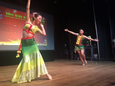 北京時間9月1日凌晨,倫敦魯?shù)梅蛩沟美談龅教幯笠缰鴿庥舻闹腥A風(fēng)情,湖南省僑聯(lián)“親情中華•魅力湖南•美麗常德”僑心藝術(shù)團在歐洲的最后一站英國慰問演出激情上演,臺上演員們傾情表演,臺下僑胞們熱情呼應(yīng),掀起一波又一波的高潮。