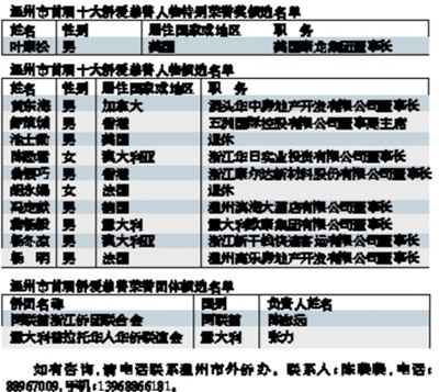溫州市首屆“十大僑愛慈善人物”候選名單出爐
