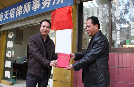 中國(guó)僑網(wǎng)1月12日電 12月9日,云南省文山州“僑務(wù)法律服務(wù)站”在文山州天信律師事務(wù)所成立。文山州外僑辦黨組書(shū)記、主任楊紹祥與州人大民工委主任柏華林共同為文山州“僑務(wù)法律服務(wù)站”揭牌。文山州政協(xié)民族宗教外事委領(lǐng)導(dǎo)、州僑聯(lián)領(lǐng)導(dǎo)、州外僑辦領(lǐng)導(dǎo)班子及全州8縣(市)僑辦、三個(gè)華僑農(nóng)(林)場(chǎng)主要領(lǐng)導(dǎo),文山州天信律師事務(wù)所部分律師出席了揭牌儀式。文山州外僑辦副主任韋恩祥向天信律師事務(wù)所副主任趙云武律師頒發(fā)了聘書(shū)。