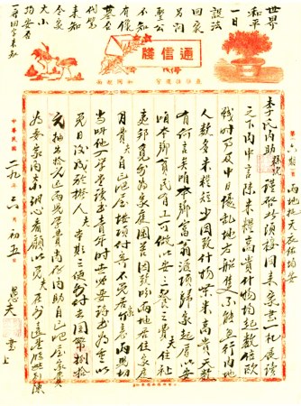 世界和平一日,設法回家。另問圣公不知有像墓否?代筆來知。合家大小均安否?一齊回字來知。