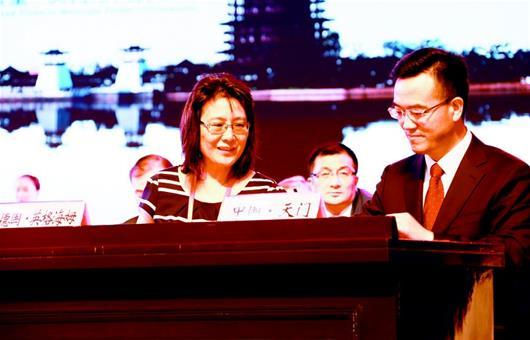 圖為:天門與德國(guó)英格海姆市簽訂經(jīng)濟(jì)合作城市意向書