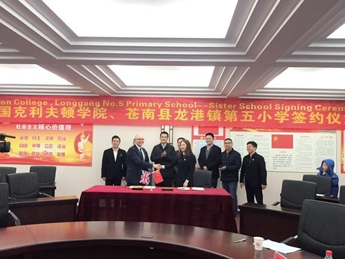 中國(guó)僑網(wǎng)12月26日電 據(jù)溫州市外僑辦網(wǎng)站消息,近日,英國(guó)克里夫頓學(xué)院(Clifton College)Tony Evans校長(zhǎng)一行應(yīng)邀赴浙江溫州蒼南縣開(kāi)展教育、文化交流活動(dòng),并簽訂姐妹學(xué)校協(xié)議。