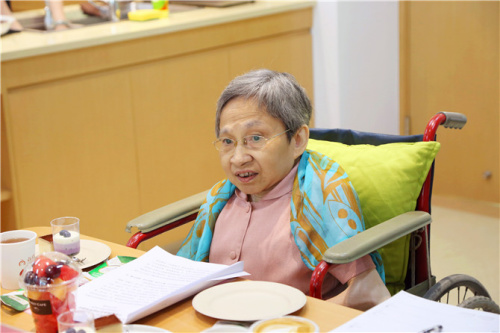 “參加這個會議,我感到非常榮幸。1952年,我從印尼回到祖國,那年我11歲,我妹妹9歲。1959年父親患癌去世前,鄭重向我母親囑咐,不管有什么困難,不能再回到印尼,一定要相信黨,相信政府,把我們的根留住。后來,我慢慢體會到這份情感從何而來。我身體不好,每年各級僑聯(lián)組織領(lǐng)導(dǎo)都會上門看望我和妹妹,街道社區(qū)也給予了我無微不至的關(guān)愛,這么多年從未間斷,真的要感謝我們的僑聯(lián)?!笨到〗值罋w僑僑眷代表紀(jì)清桂說。