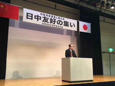 中國僑網(wǎng)10月20日電 據(jù)中國駐福岡總領(lǐng)事館網(wǎng)站消息,近日,駐福岡總領(lǐng)事何振良應邀出席佐賀縣日中友好協(xié)會主辦的“日中友好集會”并發(fā)表演講,佐賀縣日中友協(xié)會長筱塚周城、佐賀縣副知事副島良彥、眾議院議員原口一博、多久市市長橫尾俊彥及佐賀縣日中友協(xié)會員等日中友好人士共約200人參加。