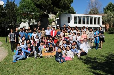 朱立英與中文學(xué)校師生及學(xué)生家長合影