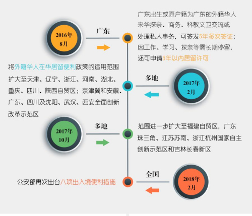 實(shí)際上,從2016年開始,公安部已持續(xù)出臺出入境新規(guī),并數(shù)次擴(kuò)大實(shí)施范圍。其中,就有方便外籍華人來華的 “專屬條款”:
