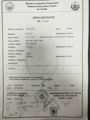 鑒此,駐埃及使館領事部建議,在埃旅居的華僑為新生兒辦理出生證時,辦理符合中國要求的出生證: