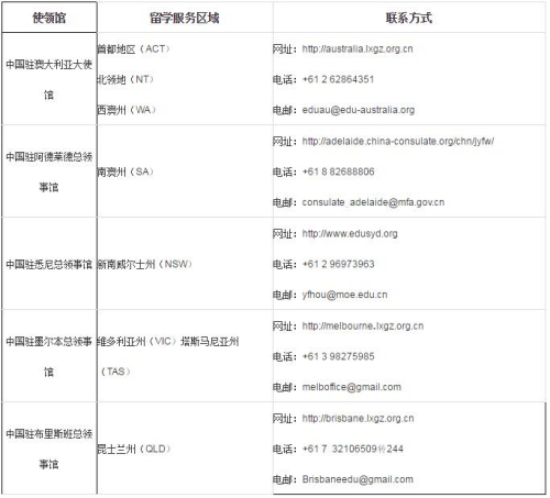 附二:駐澳使領(lǐng)館留學(xué)服務(wù)聯(lián)系方式: