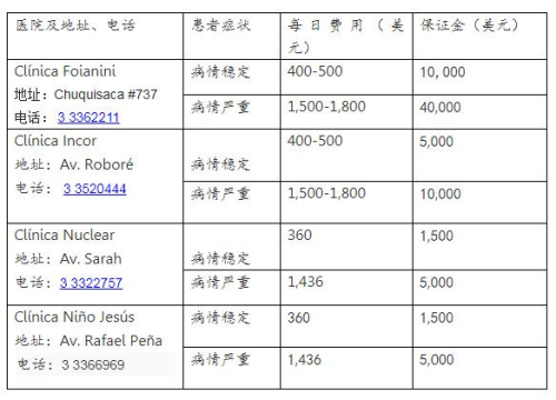 一些醫(yī)院也可做核酸檢測,如,Clínica Foianini 5天出結(jié)果,費(fèi)用1700玻幣;Clínica Niño Jesús 5-10天出結(jié)果,費(fèi)用700-800玻幣。