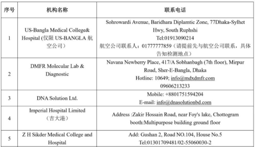 中國(guó)僑網(wǎng)7月3日電 據(jù)中國(guó)駐孟加拉國(guó)大使館微信公眾號(hào)消息,疫情期間,中國(guó)駐孟加拉國(guó)大使館再次提醒回國(guó)公民務(wù)必持72小時(shí)新冠肺炎陰性報(bào)告乘機(jī)。乘坐US-BANGLA航空公司的公民須在航空公司指定地點(diǎn)免費(fèi)做檢測(cè),乘坐其它航空公司公民可赴孟政府指定機(jī)構(gòu)做檢測(cè),以下機(jī)構(gòu)信息僅供參考。