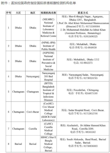 中國僑網(wǎng)7月25日電 據(jù)中國駐孟加拉國大使館網(wǎng)站消息,日前,孟加拉國政府緊急通告稱,從7月26日起,所有在孟外國公民(外交機構(gòu)、駐孟國際機構(gòu)人員及家屬、在孟停留期少于14天的旅客除外)乘航班離境時,必須持有孟政府指定的16家醫(yī)院出具的72小時內(nèi)新冠病毒核酸檢測陰性證明。