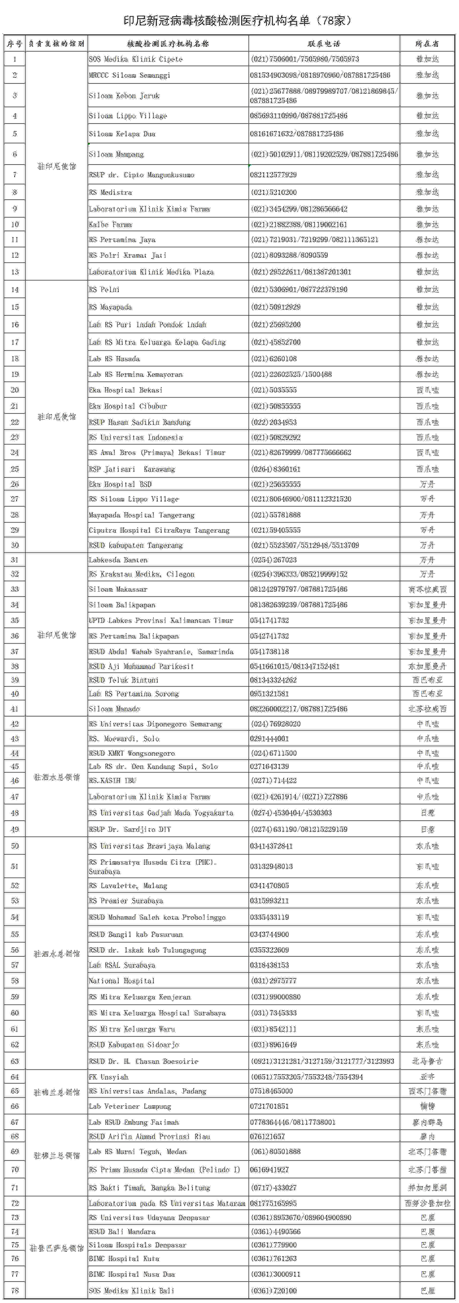 附件:印尼新冠病毒核酸檢測(cè)醫(yī)療機(jī)構(gòu)名單