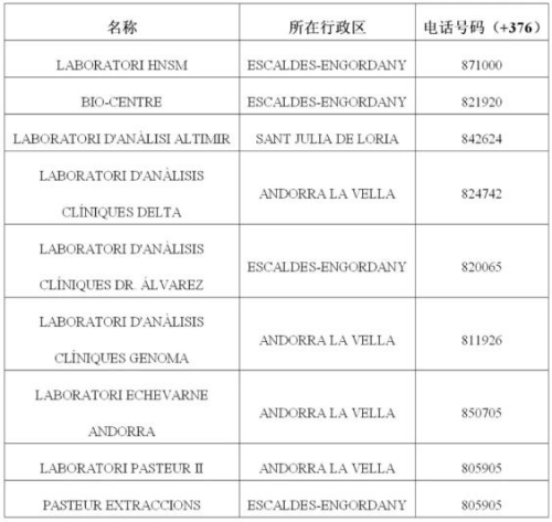 駐西班牙使館公布認(rèn)可的安道爾境內(nèi)核酸檢測機(jī)構(gòu)