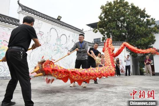 華媒代表體長樂舞龍。中新網(wǎng)記者 楊華峰 攝