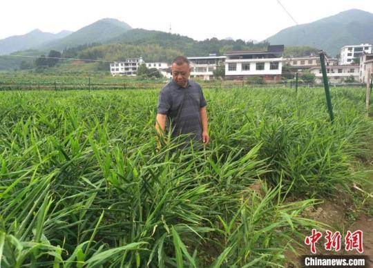 在沙洲現(xiàn)代農(nóng)旅示范基地,負責(zé)人查看小黃姜生長情況。向一鵬 攝