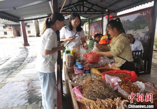 沙洲村民擺攤售賣當(dāng)?shù)赝撂禺a(chǎn)。向一鵬 攝