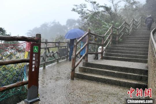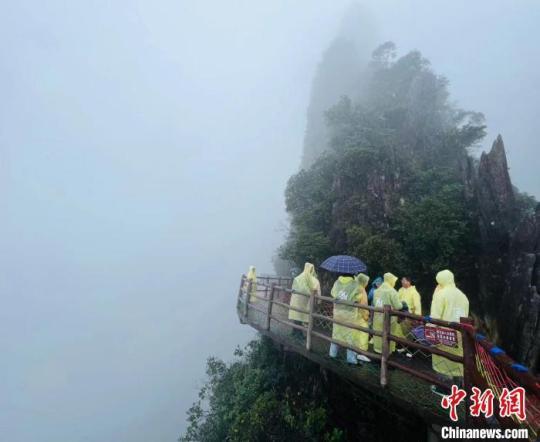 中新網(wǎng)宜章9月16日電 (記者 魯毅)“爬一座山,就像一次日常散步?!变冷罏r瀝小雨中,意大利《新華時報》社長朱玉華漫步于湖南莽山五指峰景區(qū)“云間”棧道上不禁感嘆,近兩小時的游覽,全程沒有陡坡也不用爬臺階,“沒想到登山還能這樣輕松”。