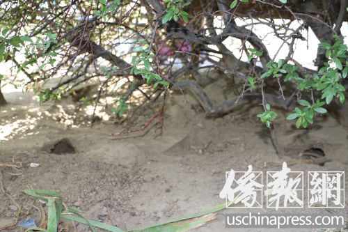 陳作舟帶著記者來(lái)到且林士果廣場(chǎng)的花圃邊,指著土中間非常多的洞說(shuō),“每個(gè)洞里面有6只老鼠!”他說(shuō),雖說(shuō)他們BID的清潔人員常填洞,但是填了老洞出了新洞,堵都堵不住。