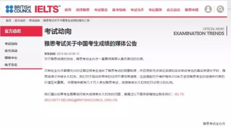 △雅思官網(wǎng)關(guān)于中國考生被扣發(fā)成績的公告