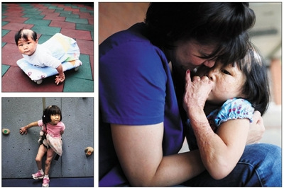 2004年1月Faye從江蘇省宜興市人民醫(yī)院轉(zhuǎn)進(jìn)宜興市兒童福利院,11月被收養(yǎng)到美國,在紐約的醫(yī)院診斷為輕度腦癱(右上)。2015年6月,F(xiàn)aye和媽媽在一起玩耍。Faye很高興在美國長大,在紐約和現(xiàn)在居住的馬薩諸塞州有很多朋友,她經(jīng)常和同樣從中國收養(yǎng)的朋友們聚會(右下)。Faye始終希望能有一天見到親生父母,告訴他們,感謝親生父母給了她生命(左)。