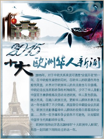 中國僑網(wǎng)12月28日電 據(jù)法國《歐洲時報》報道,2015年,對于中歐關(guān)系可謂是“全面開花”的一年,在歐華人的聯(lián)通作用也愈發(fā)突顯,外界對于歐洲華人的關(guān)注度也與日俱增?!稓W洲時報》特此評選出2015年“十大歐洲華人新聞”,和您一起回顧下剛剛走過的這一年。