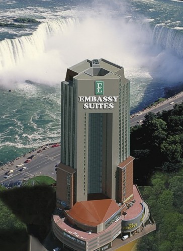 據(jù)吳先生介紹,他們一家四口與朋友一家四口相約預(yù)定了圣誕假期入住Embassy Suites酒店,這是一家被稱為世界上最佳觀景酒店,就在尼亞加拉大瀑布旁邊,居高臨下俯視瀑布。