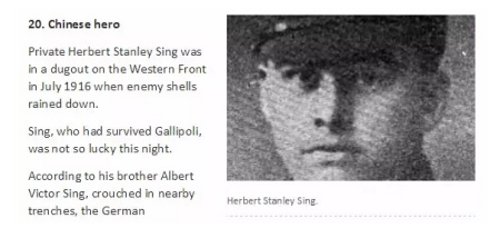 其中有一位新西蘭華裔——Herbert Stanley Sing (中文名已不可考),尚能挖掘到一些關(guān)于他的,只言片語(yǔ)的往事。這位年輕的軍人,于1916年在一戰(zhàn)中英勇犧牲。