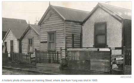 淘金熱消退后,很多中國(guó)礦工散布到新西蘭各地城鎮(zhèn)并且形成了小型社區(qū)。其中之一就是以惠靈頓Haining Street為中心發(fā)展起來的中國(guó)社區(qū)。這里曾經(jīng)被描述成是新西蘭最雜亂無(wú)章的貧民窟,里面充斥著賭場(chǎng)和鴉片館。