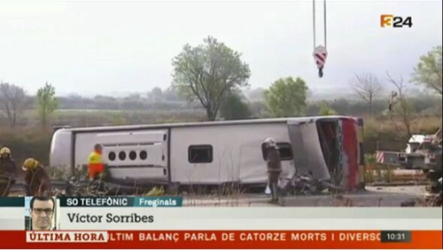 西班牙大巴發(fā)生車禍 14名外國學(xué)生死亡(組圖)