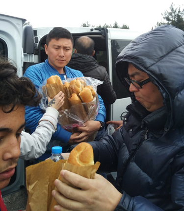 胡惟榕:發(fā)放食物時(shí)是最難掌控局面的,每個(gè)人都想得到更多的面包奶酪和巧克力,在物資告罄的時(shí)候是最令人動(dòng)容的時(shí)刻,要面對的是排在領(lǐng)取物資隊(duì)尾的難民們失望的眼神,雖然一遍遍的說著Finish,Tomorrow,可是孩子們還是不肯散去,他們眼巴巴的瞅著排在前面的孩子手里的巧克力,他們相信明天還有救助,最無奈的是我們自己知道明天不會再來了。我們的物資對龐大的難民群來說只是杯水車薪,在救助難民的工作中,我們體會到了人性的光輝與本善。