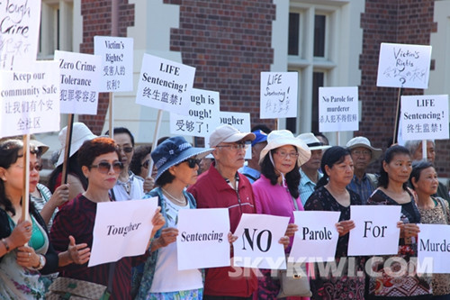 今年2月第二次出庭時(shí),在法院外面,不少華人自發(fā)舉行靜默抗議集會(huì),他們?nèi)贾鲝垖?duì)罪犯重判。
