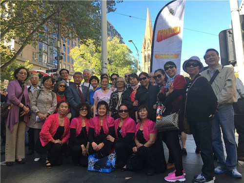 當(dāng)?shù)貢r(shí)間4月25日上午9點(diǎn),墨爾本Anzac游行隊(duì)伍從Flinders街和Swanston街交叉口開(kāi)始,沿著St Kilda路一直走到皇家植物園附近的 The Shrine of Remembrance 戰(zhàn)爭(zhēng)紀(jì)念館,游行隊(duì)伍的成員有參加過(guò)戰(zhàn)爭(zhēng)的老兵,以及老兵的子女和后代,而在今年的游行隊(duì)伍當(dāng)中,有一支由近30位中國(guó)大陸籍華人組成的游行隊(duì)伍吸引了記者的注意,他們都是華人軍人們的后代,這其中包括當(dāng)年參與第二次世界大戰(zhàn)的士兵家屬,這也是墨爾本地區(qū)首次有中國(guó)大陸籍華人參與的澳新軍團(tuán)日游行。