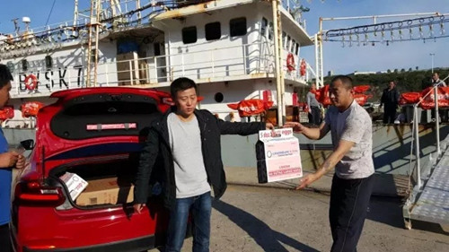 在漁船上得知:這些船員離開祖國(guó)己經(jīng)兩年,很久沒有和家人聯(lián)系,24日下午朱樂琴和饒大林,秦冰青一起去給中國(guó)船員送去大量的水果及蔬菜及電話卡,并幫他們充足話費(fèi),同時(shí)告訴船員們開普敦總領(lǐng)館非常關(guān)心他們。