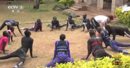 在肯尼亞內(nèi)羅比,即將參加田徑項(xiàng)目的難民運(yùn)動(dòng)員正在泥地上訓(xùn)練: