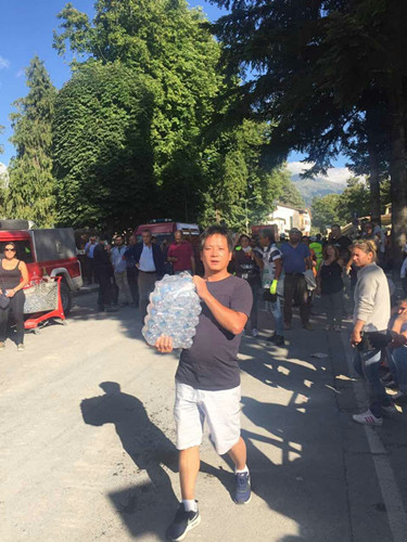 居住在意大利普拉托的兩位溫州籍司機小伙子“大高”和“新仔”獲悉災(zāi)情后,馬上采購了礦泉水、方便面及面包等食品,冒著余震驅(qū)車五個多小時到達受災(zāi)最嚴重的地區(qū),把礦泉水及食品分發(fā)給救援人員及災(zāi)民,充分體現(xiàn)了旅意華人華僑與意大利人民心連心,共同抗震救災(zāi),樹立了華人的良好形象。