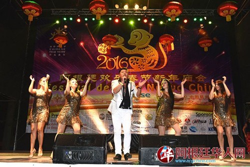 作為阿根廷東北三省同鄉(xiāng)會常務(wù)副會長的華人歌手張金良(阿龍)旅居阿根廷近十年,多次參加阿根廷華人春節(jié)慶典演唱和阿根廷當?shù)厣鐣拇笮脱莩?,在華人群體和阿根廷社會已很有名氣。