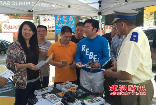 中國僑網(wǎng)9月26日電 據(jù)《非洲時報》報道,9月24日上午,南非約堡城市警察(JMPD)來到約堡唐人街街頭“擺攤”,向過往的民眾派發(fā)“反腐宣傳活動”的宣傳單,并熱心解答民眾提到的各類問題。