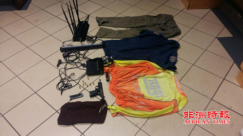 中國僑網(wǎng)10月8日電 據(jù)南非華人網(wǎng)報道,10月6日,南非約堡市警(JMPD)接到線報稱位于Tembisa地區(qū)的一間民宅內(nèi)藏有大批警察制服和犯罪工具。JMPD前往搜查后發(fā)現(xiàn)一名男性屋主非法持有多件JMPD制服、警用藍燈、非法槍械、彈藥、警用辣椒噴霧以及一部8頻道的信號干擾器。此男屋主立刻遭逮捕并被押往Tembisa South警局進行起訴和收押。