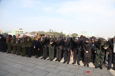 同日,中國駐清津總領(lǐng)事李杰也率領(lǐng)總領(lǐng)館工作人員赴咸境北道穩(wěn)城郡南陽邑祭掃當(dāng)?shù)刂驹杠娏沂苛陥@,領(lǐng)取華僑和吉林省延邊州、圖們市有關(guān)人員參加。