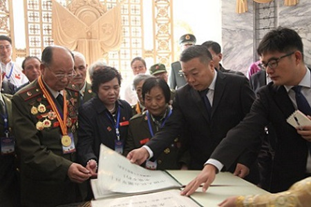 隨后,李進(jìn)軍陪同志愿軍老戰(zhàn)士和遺屬們參觀了友誼塔塔室,聽取朝方講解員講解志愿軍戰(zhàn)士英勇戰(zhàn)斗的光輝歷史。老戰(zhàn)士和遺屬們用顫抖的手翻閱著志愿軍烈士名冊,潸然淚下,“老戰(zhàn)友我來看你了”,“叔叔、伯伯我們來看您了”,“爸爸,您的遺愿我完成了”,他們呼喚著戰(zhàn)友和親人的名字,傾訴著感激和思念之情,并用最崇高的軍禮來表達(dá)對戰(zhàn)友和親人的崇敬和緬懷之情。全體在場人員都十分感動,無不熱淚盈眶。