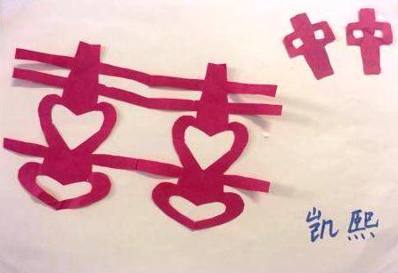 第一次接觸剪紙的同學(xué)們都興致高昂,他們學(xué)習(xí)折紙、構(gòu)圖、剪圖案等,有的學(xué)生剪出“喜”字、企鵝、蝴蝶,還有的學(xué)生創(chuàng)造性地剪出天鵝、松鼠、船、猴子、拉手小人等。
