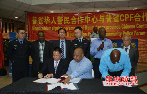 中國僑網(wǎng)11月2日電 據(jù)《非洲時(shí)報(bào)》報(bào)道,日前,南非姆普馬蘭加省(以下簡稱“普省”)華人警民合作中心與當(dāng)?shù)鼐窈献髡搲炇鹆撕献鱾渫洠餐瑯?gòu)建治安聯(lián)防體系。此舉是普省華人警民合作中心攜手當(dāng)?shù)厣鐓^(qū)警民組織合作打擊和防范犯罪所做的新舉措。