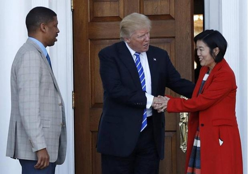 19日,特朗普在新澤西還會(huì)晤了以教育改革出名的李洋姬 (Michelle Rhee)。報(bào)道稱,父母是韓國移民的李洋姬是特朗普正在考慮的教育部長人選之一。