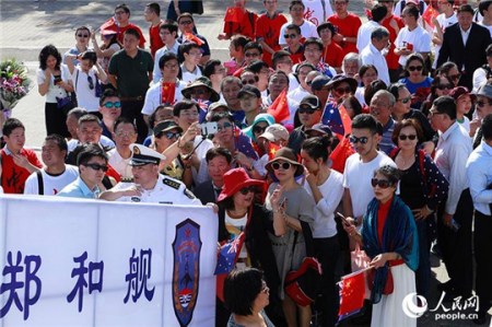 中國海軍鄭和艦抵澳洲友好訪問 華僑華人歡迎(圖)