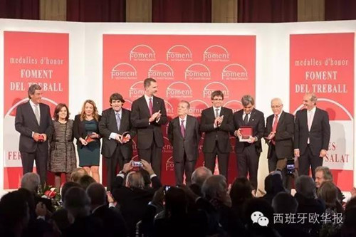 中國僑網(wǎng)11月24日電 據(jù)西班牙《歐華報》報道,日前,由西班牙加泰羅尼亞企業(yè)及商業(yè)組織聯(lián)盟(Fomentde Treball Nacional ,以下簡稱Foment)主辦的2016年度表彰大會在巴塞羅那隆重舉行。西班牙國王費利佩六世出席。